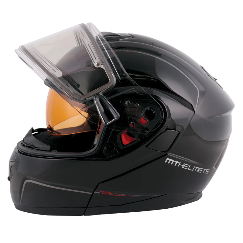 Polycarbonate model with two shell sizes. Ultimate helmet for long-distance snowmobilers. Includes breath guard and amber inner visor. Available with double or electric quick-release shield. Also includes a micrometer buckle and a practical, comfortable and washable anatomic inner cap.