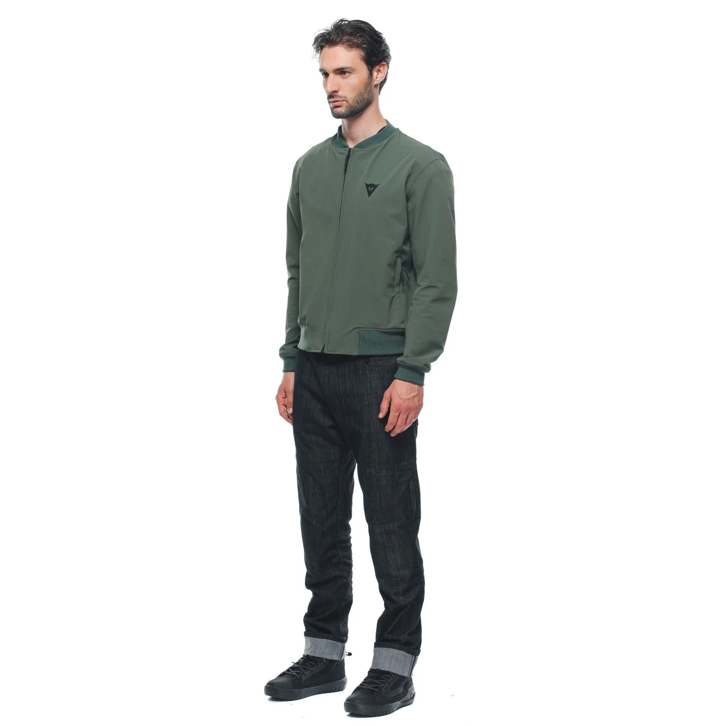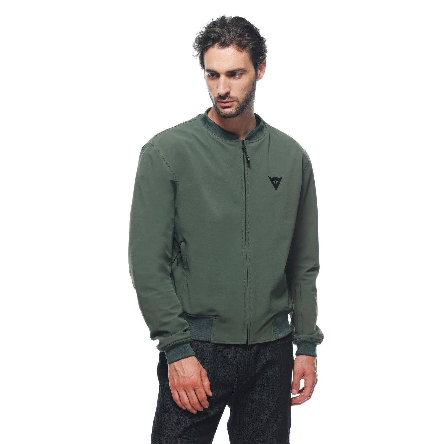 - Casual motorcycle bomber jacket in breathable, windproof and water-repellent fabric, with soft Por-Shape 2.0 protectors on shoulders and elbows.