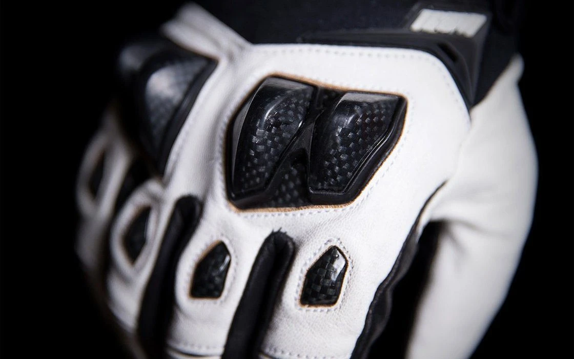 Disagreements are usually settled one of two ways: with a handshake or a backhand. The receiving end of the latter had better hope it’s not coming from the ICON Konflict glove. Set into an engineered backhand of Ax Suede and Neoprene, the carbon-fiber-reinforced TPU can leave one helluva mark. On the nether side, a one-piece Battlehide goatskin palm eliminates seams, providing a durable, contoured fit that provides excellent dexterity.