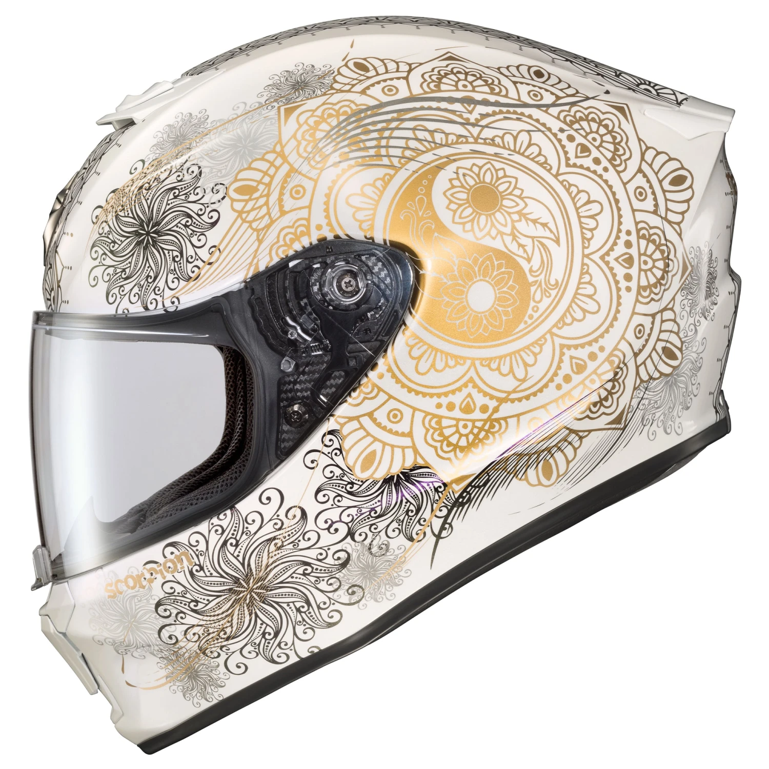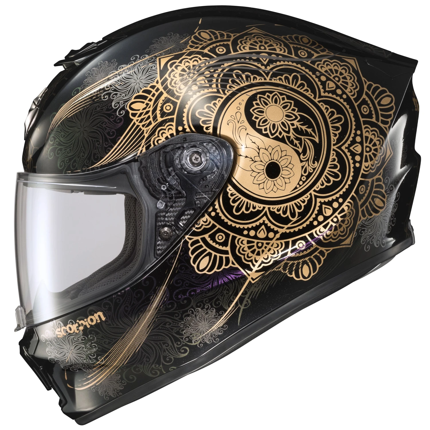 The EXO-R420 helmet continues to set a new standard for Scorpion EXO®’s full face street helmets at a very competitive price point. An all new advanced polycarbonate shell is more aerodynamic and smaller resulting in an ultra lightweight SNELL-approved helmet. The aero tuned ventilation system uses a large top vent and mouth vents engineered to allow more airflow to the riders head while maintaining low noise levels. The EXO-R420 now features our new Elliptec™ II faceshield with a latching shield locking mechanism located in the lower center of the shield. This makes the faceshield more secure and provides a tighter seal against the gasket. The faceshield can easily be removed without tools, and the EverClear® No-Fog coating helps keep your vision clear in cold and damp environmental conditions. The KwikWick® II comfort liner is moisture wicking, quick drying and can be easily removed and is machine washable.