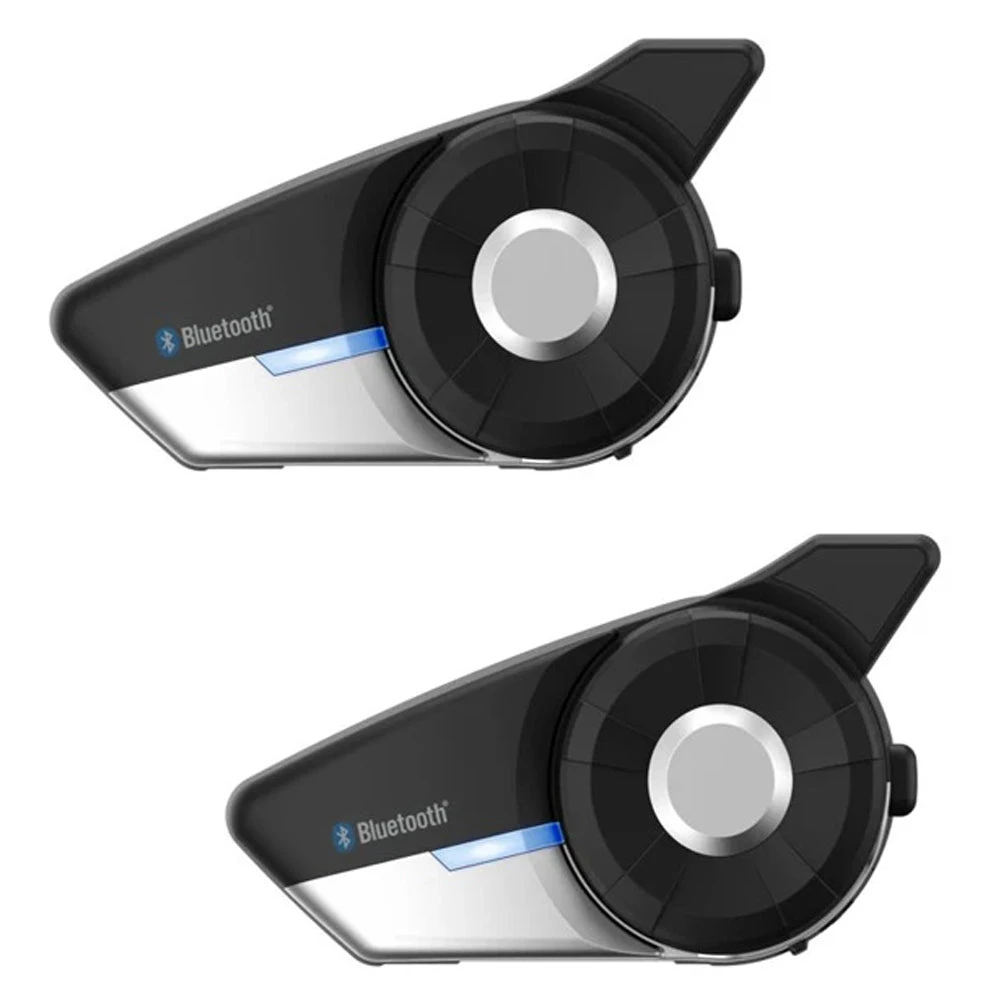 The 20S EVO is an improved version of the popular 20S. The most important change is the flip-up antenna that has been replaced for a “shark fin” type. There are no additional features, but the distance & connectivity have been improved. The 20S EVO features several industry firsts for the motorcycle Bluetooth communication headset market. One industry first is the introduction of Bluetooth 4.1 technology with dual Bluetooth communication module, to create one of the most advanced Bluetooth headsets in the market. The new Bluetooth technology increases the performance and reliability of the headset while also allowing for increased high definition audio quality. The advanced Audio Multitasking allows for a seamless blend of incoming and outgoing audio to create a mixed audio experience versus the traditional interruption-based audio technology of other Bluetooth devices. As with the 20S, the 20S Evo users can call handsfree with their Bluetooth mobile phones, listen to stereo music or voice instructions of GPS navigation by Bluetooth wirelessly, and have intercom conversations in full duplex with a passenger or other riders. The Sena Smartphone App is available for users to download on both iPhone and Android smartphones to allow users to adjust the settings of their 20S EVO.