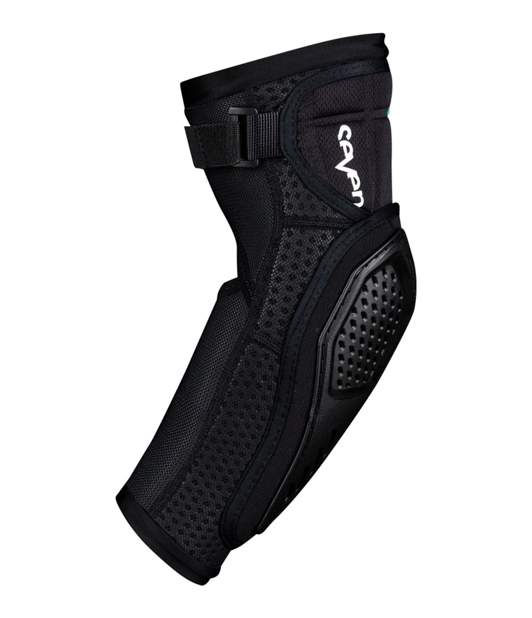 The Seven Stratus Elbow Guard. Plush slip-on compression sleeve combined with low-profile hook and loop closure.